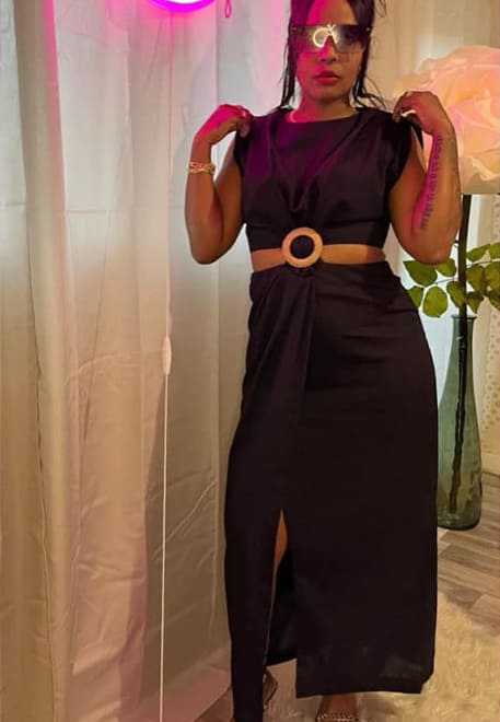 Robe longue à découpes – Boucle en lin mélangé – Noir
